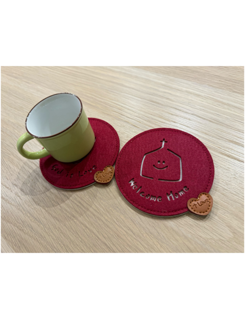 紅-質感毛氈杯墊組(4入)