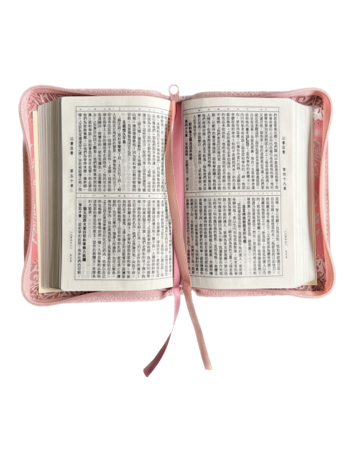 (玫瑰粉/銀)皮面拉鍊_3系列聖經和合本
