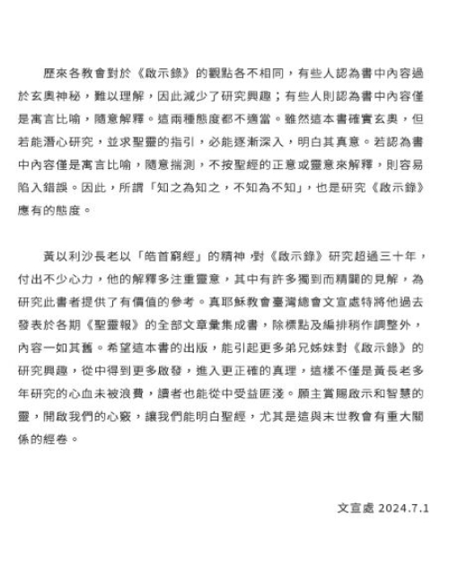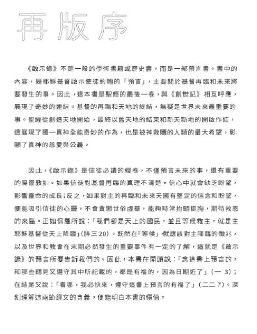 透過黃長老的深入研究,讀者將能夠更清晰地理解末世預言,增強對基督再臨和天國的盼望。書中針對歷來對《啟示錄》理解的偏差,給予了正確的指引,避免隨意解釋或誤解經文的風險。本書不僅是學術上的研究,更是信仰上的引導,幫助信徒在末世的挑戰中堅定信心。《啟示錄的研究》適合所有渴望明白末世真理、加深信仰內涵的讀者。透過本書的指引,您將更深入地體會神的慈愛與公義,為迎接基督的再臨做好準備。
