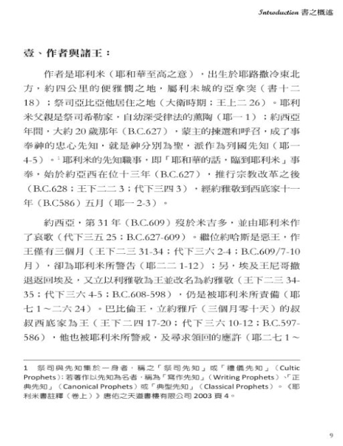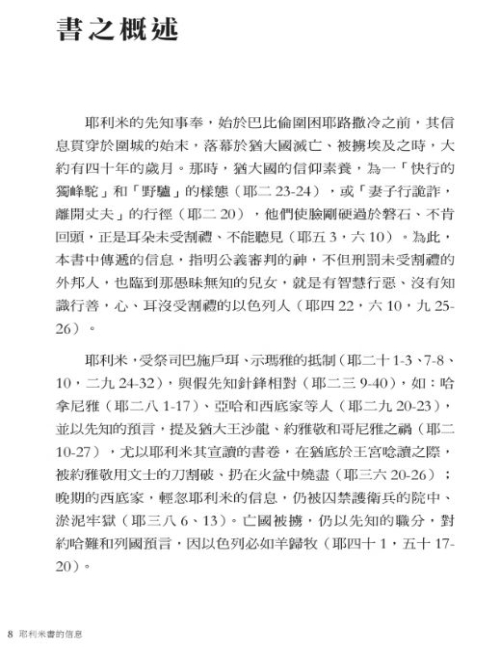 《耶利米書》的經卷,在舊約聖經的先知書之中,其篇幅僅次於以賽亞書的六十六章,全書計有五十二章之多,是比較艱深且花費時間較長的一卷;為此,個人平日的研經過程,常常是看一看、讀一讀的帶過,或是擇要的經文分享而已,較少作深入的系統查考。然而,就在完成《被擄歸回的信息》一書之後,感覺自以色列王國建立以降,及至猶大國的國亡被擄、歸回歷史,似乎還少了一塊拼圖一樣,於是在探究猶大國滅亡的思索中,決定從《耶利米書》的經卷開始。