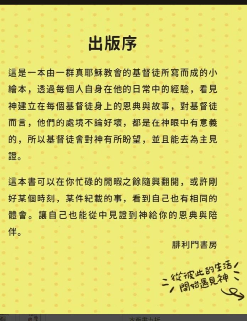 2.送給尚未接觸基督教的朋友,看見基督徒的生活小見證。