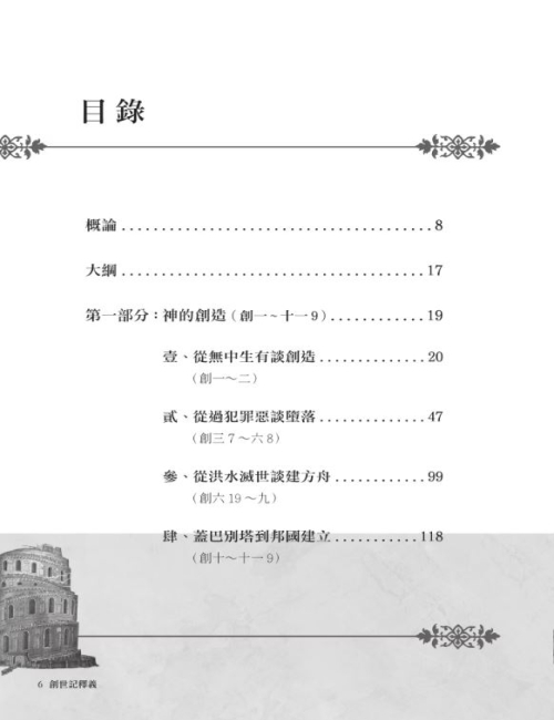 本書由黃誌新傳道系統性講解創世記每一段落,不僅忠於聖經的文本解釋,也用「聖經對觀閱讀」的角度引入解釋之中――例如創世記第一章與第二章若單獨閱讀,似乎存在矛盾,但若以對照方式閱讀,便能看見神在不同層次上的創造鋪排與屬靈秩序。