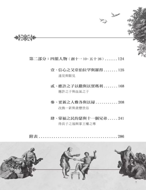 除了前半部關於創造的深度講解外,書中後半部對於亞伯拉罕、以撒、雅各、約瑟等人物的解析,也呈現出創世記如何從天地的起源推進到神與人的信約歷史。在雅各對十二個兒子的祝福中,我們看見「祝福」不只是父親對兒女的臨終遺言,且是神藉由與人密相契的僕人,按著祂的旨意所做的屬靈預言與安排。猶大得政權,約瑟得大福,都是在神的主權與應許下成就的分派。