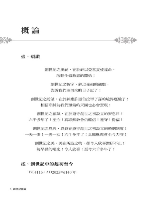 《創世記釋義:從起初看見神心意》不僅記載天地如何被造、人類如何被安置,更清楚傳遞了三個核心:神的主權、人的使命、以及制度的起源與遵行。在這卷開天闢地之書中,我們讀到的不只是神的大能,更是神的智慧與慈愛;不只是創造的過程,更是關係的設立與責任的委託;不只是過去的起頭,更是啟動救恩進程的開端。
