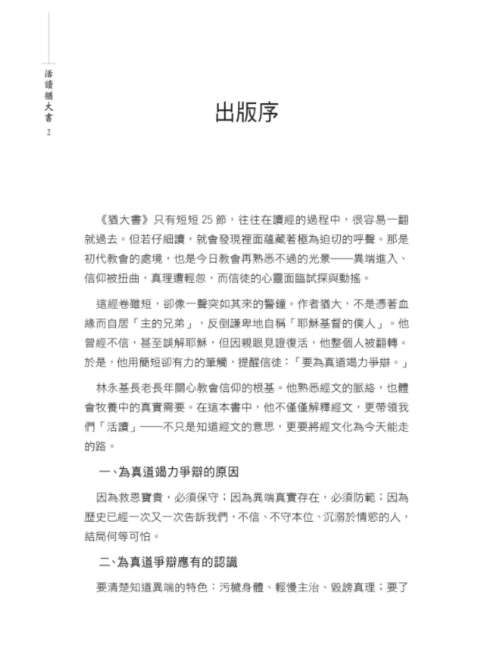 本書《活讀猶大書》,正是一次對這卷短小卻極其尖銳之經卷的深度釋讀。全書以猶大書二十五節經文為骨幹,逐節講解、層層展開,竟發展成一部約一百五十餘頁的專書,充分顯出:這不是一卷「內容貧乏」的短書,而是一篇極其濃縮、卻極其重要的屬靈戰書。