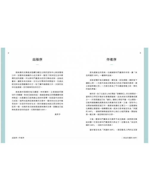 也期許弟兄姊妹透過這些文章,打開天國的WIFI,追求信仰。