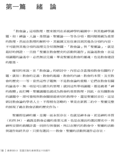 本書作為系統神學所研究本會的教會論,給出了非常仔細的整理跟分析,把你在聖經中所看見《聖靈活動在教會歷史中的運作》都一一寫出來,相信可以幫助讀者,從中看到完整的視野:聖靈是如何建立起使人得救的教會觀。